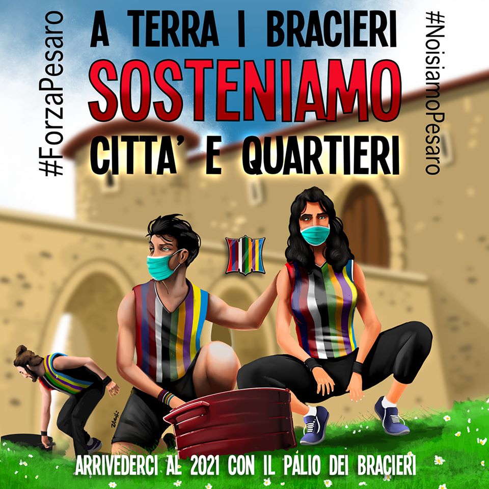 “In questo che doveva essere il 10° anniversario di una delle manifestazioni che negli ultimi anni ha coinvolto e colorato di più la città di Pesaro, il Palio si ferma e mette a terra i bracieri. Una decisione arrivata dopo l’ultimo incontro con la delegazione dei quartieri, la casa dei comitati di contrada. Scelta unanime, nonostante si siano valutate anche alcune soluzioni di organizzazione, con l’idea di spostare la manifestazione a settembre 2020 o addirittura correre un Palio a porte chiuse dando la possibilità a tutti di vedere la corsa, cuore pulsante dell’evento, sulla tv e mezzo social.