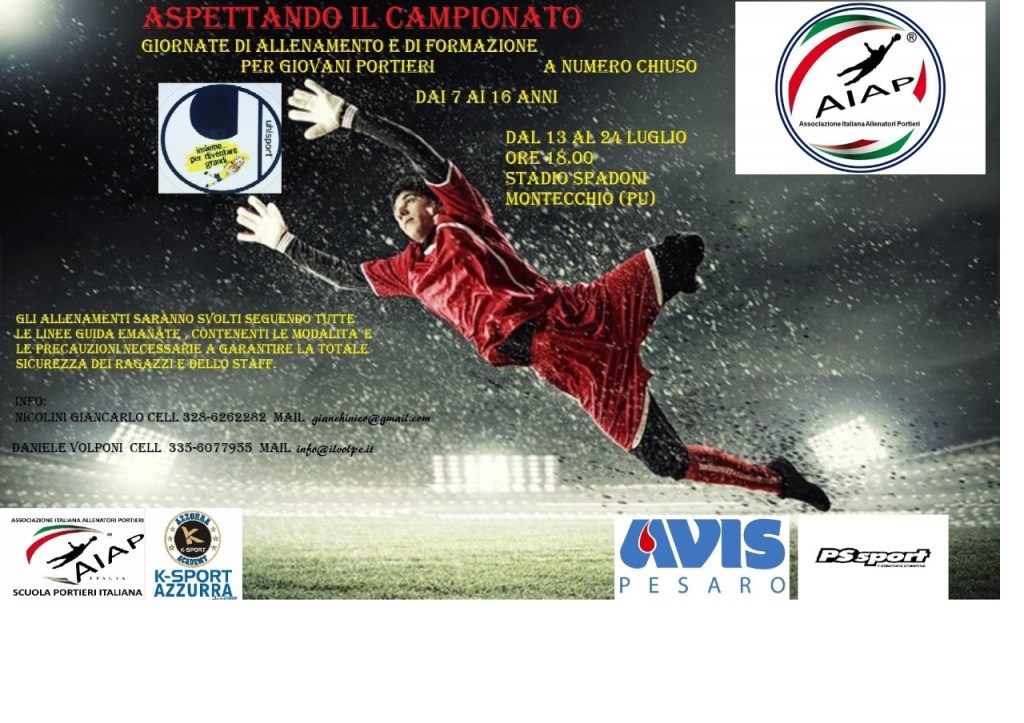 K Sport Academy Azzurra pensa anche a tutti i numeri uno, con la collaborazione della scuola portieri AIAP e Uhlsport “Insieme per diventare grandi”, dal 13 al 24 luglio presso lo Stadio Spadoni di Montecchio, andrà in scena il Camp Portieri 2020 “Aspettando il Campionato”, rivolto ai keeper nati dal 2003 al 2011. “La voglia di tornare in campo è tanta-spiega uno degli organizzatori Giancarlo Nicolini, preparatore dei portieri K Sport Academy Azzurra- in collaborazione con il nostro club biancazzurro e AIAP, vi aspettiamo numerosi. Non mancheranno le sorprese e diversi ospiti provenienti da importanti realtà calcistiche, non mancate”.