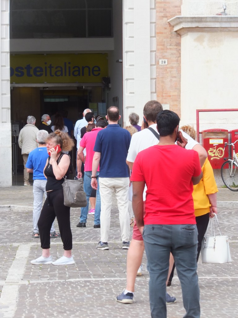 Scrive un nostro lettore, allegando due fotografie, per fare vedere le lunghe file che ieri si sono create presso le Poste centrali di Pesaro per il pagamento dell’Imu 2020. Il nodo della protesta, che il nostro affezionato lettore sottolinea con sdegno, è il fatto che in questo periodo di emergenza dato dal covid 19, le Poste Centrali dove lui si è recato, avevano apertosolo due sportelli, per questo motivo si sono create queste lunghe code, nonché malumori, fin dalle prime ore del mattino.