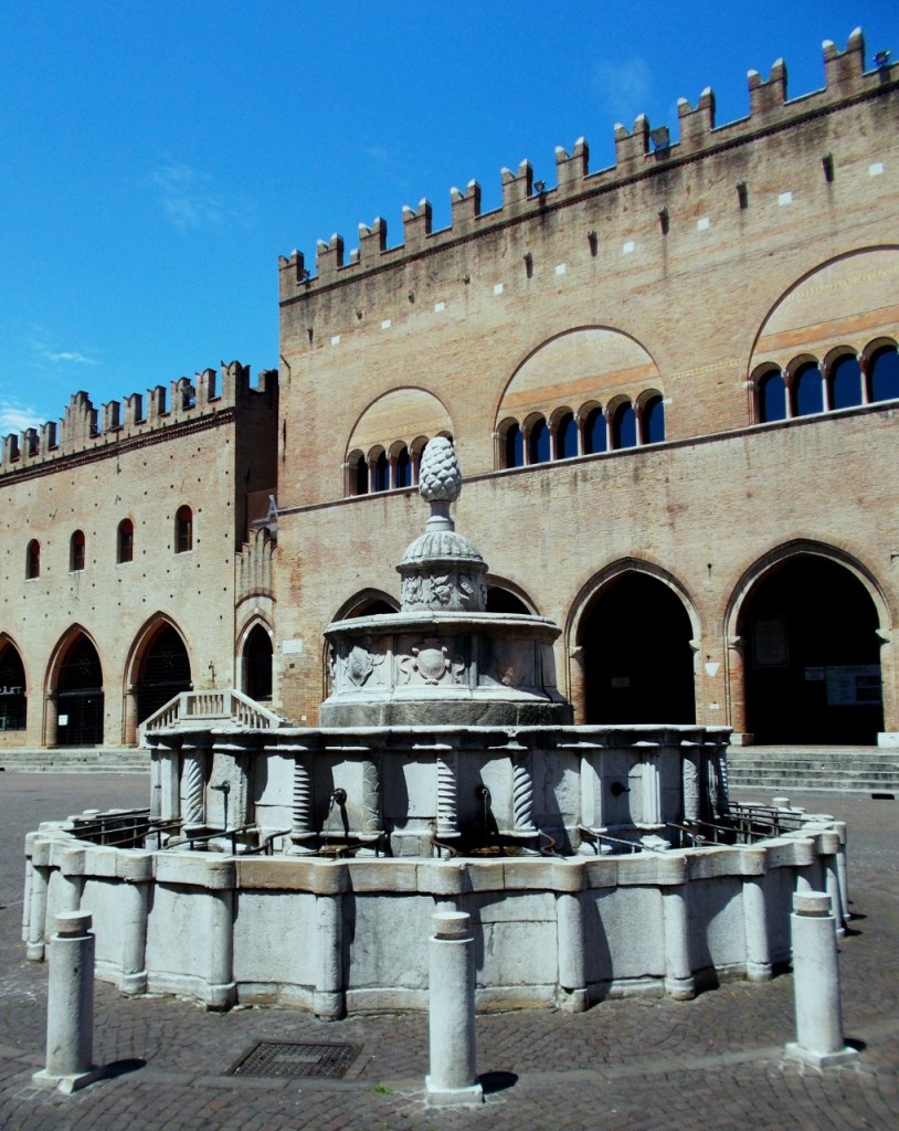 A Rimini in Piazza Cavour, centro della vita cittadina, è ubicata la Fontana della Pigna, così chiamata appunto per la pigna in cima alla scultura di marmo di Carrara che risale alla metà del ‘500. Su questa Fontana, ricostruita a Cinecittà, si posò il pavone nella scena delle palle di neve a Gradisca nel celeberrimo capolavoro di Federico Fellini “Amarcord”.