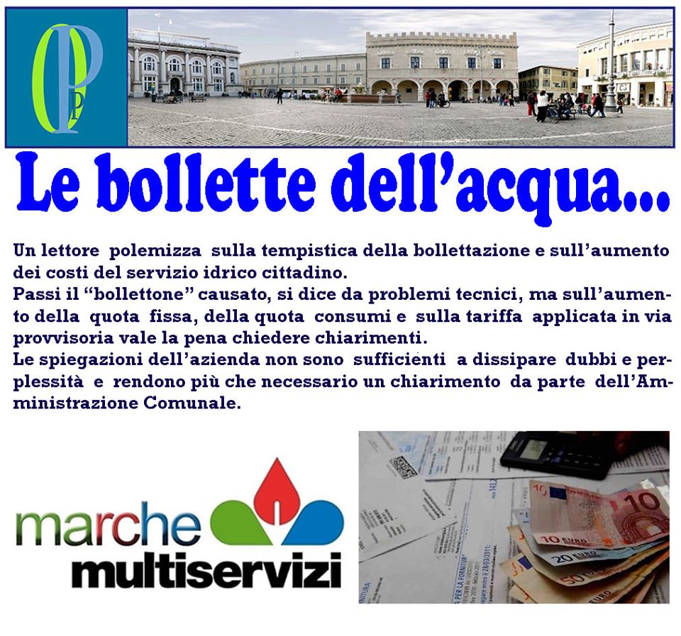 Un lettore polemizza sulla tempistica della bollettazione e sull’aumento dei costi del servizio idrico cittadino. Passi il “ bollettone” causato, si dice da problemi tecnici, ma sull’ aumento della quota fissa, della quota consumi e sulla tariffa applicata in via provvisoria vale la pena chiedere chiarimenti. Le spiegazioni dell’azienda non sono sufficienti a dissipare dubbi e perplessità e rendono più che necessario un chiarimento risolutivo da parte dell’Amministrazione comunale.