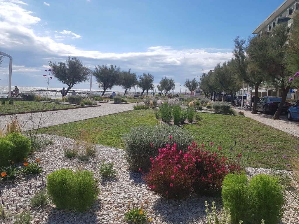 SINERGIA – Un protocollo d’intesa ha definito i compiti dei diversi operatori. Riconfigurazione generale di aiuole e percorsi dal Comune; riqualificazione del corredo vegetale dalla Fondazione Scavolini; messa a dimora delle piante e del sistema di irrigazione da Aspes; predisposizione a titolo gratuito del progetto generale dallo studio Landesign. «Il giardino realizzato ha un nuovo disegno che, senza mutare la struttura già esistente, ha tenuto conto delle variazioni planimetriche dell’area intervenute nel tempo. È stato così introdotto un boschetto al suo termine settentrionale: un gelseto, le cui alberature offrano nel tempo chiome ombrose sotto cui riposare. Una lunga seduta continua è stata inserita lungo il perimetro rivolto al mare. Le specie vegetali selezionate per colorazione e portamento vogliono evocare l’ambiente della riva marina. Ma le nuove sistemazioni vegetali rispondono anche a criteri di sostenibilità, contenimento della manutenzione, incremento della biodiversità», rimarcano i tecnici coinvolti nell’operazione.