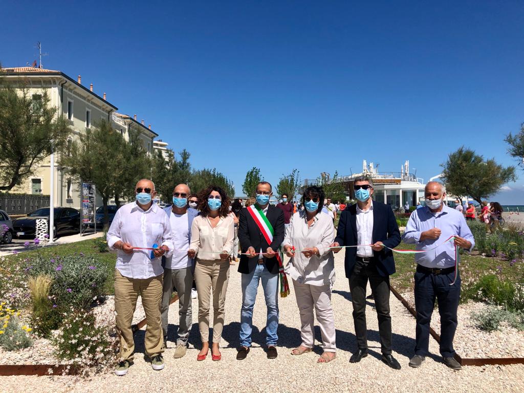 PESARO – Riqualificazione per i giardini della zona mare in via Colombo. L’asse dalla Palla di Pomodoro al moletto – tra i più caratteristici del lungomare pesarese negli anni Cinquanta e Sessanta, frequentato in ogni stagione – riapre dopo l’intervento condotto in sinergia da Comune, Fondazione Scavolini, Aspes e studio Landesign.«Riprendendo una storia ma guardando al futuro», spiega Matteo Ricci. «Abbiamo bisogno di rinascere dopo il drammatico periodo che abbiamo vissuto, in una fase socioeconomica molto complessa. Oggi comunichiamo che Pesaro c’è. E’ una città accogliente, sicura e ha tanti spazi aperti. Continueremo a farlo nei prossimi giorni con una serie di testimonial che rilanceranno la nostra campagna». Anche per questo, prosegue il sindaco, «è stato fondamentale terminare il lavoro nonostante il lockdown. Grazie alla Fondazione e alla famiglia Scavolini per il grande contributo». Con l’intervento «completiamo la riqualificazione nella zona, dopo la sistemazione di piazza della Libertà e il lavoro sull’illuminazione intorno alla Palla di Pomodoro». Sindaco soddisfatto del disegno: «A me piace molto. Richiama il passato ma guarda al futuro nel segno della sostenibilità. L’11 luglio intitoleremo i giardini a Nilde Iotti, prima donna presidente della Camera e figura di avanguardia nelle battaglie di parità. Siamo una delle prime città a farlo nel centenario della nascita, sicuramente ci saranno personalità nazionali». Nel frattempo «manteniamo la prudenza, ma comunichiamo anche che Pesaro è sicura. E che qui ognuno può trovare i suoi spazi». Sottolinea la presidente della Fondazione, Emanuela Scavolini: «Un anno fa in pochi ci credevano ma siamo riusciti a fare nei tempi tutto quello che si era progettato. Grazie a tutti i soggetti coinvolti nell’operazione. Con la Fondazione continueremo a valorizzare il patrimonio della città. Durante il lockdown ci siamo chiesti se proseguire o meno con i lavori per arrivare alla fine. Il risultato odierno è la dimostrazione che abbiamo fatto bene. E’ una bella giornata, che dà speranza. Facciamo un passo avanti per riprendere poco alla volta la nostra vita. Spero che il giardino sia l’inizio»