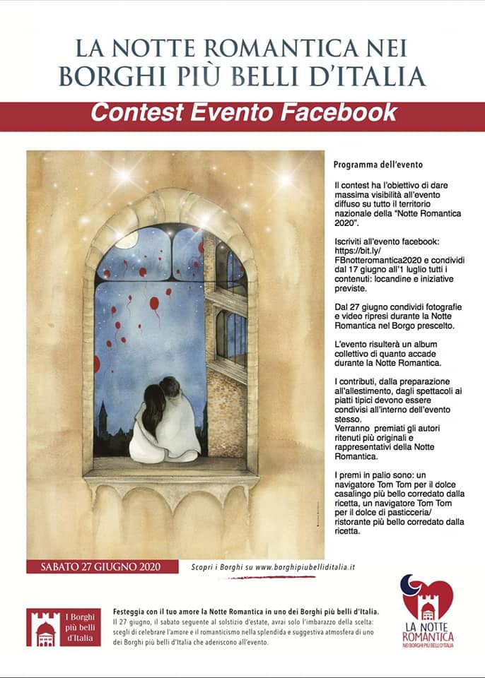 Ancor più ricco il programma ideato, con tante novità, ad iniziare da sabato in occasione della Notte Romantica nei Borghi più belli d’Italia. Per l’evento nazionale arrivato alla quinta edizione, dalle 21.30 Parole d’amore nella splendida cornice del quartiere delle Tinte. E nei bar, agriturismi e ristoranti aderenti all’iniziativa tante dolci sorprese per gli innamorati.