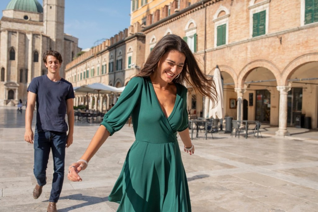 La serie parte dal matrimonio per toccare tante altre tematiche, proprie della commedia romantica. Le principali location di Non voglio mica la luna non sono infatti scelte scontate, né un semplice background, ma vere protagoniste nello svolgimento della storia. Si va da Ascoli Piceno con i suoi palazzi, le piazze storiche e le sfumature indimenticabili del travertino, alla Riviera delle Palme con gli incantevoli panorami marini, Offida e le sue bellezze di piccolo borgo. E poi l’entroterra piceno, con Castel Trosino e il naturale spettacolo dei Monti Sibillini. E infine un tuffo nella storia e nell’arte con il paese delle fisarmoniche Castelfidardo e la culla del Rinascimento, Urbino. La villa inizialmente scelta per il matrimonio di Sibilla e Tom è il Borgo Storico Seghetti Panichi, a Castel di Lama. La serie è composta da sei episodi, ognuno introdotto da un quadro che ne sintetizza