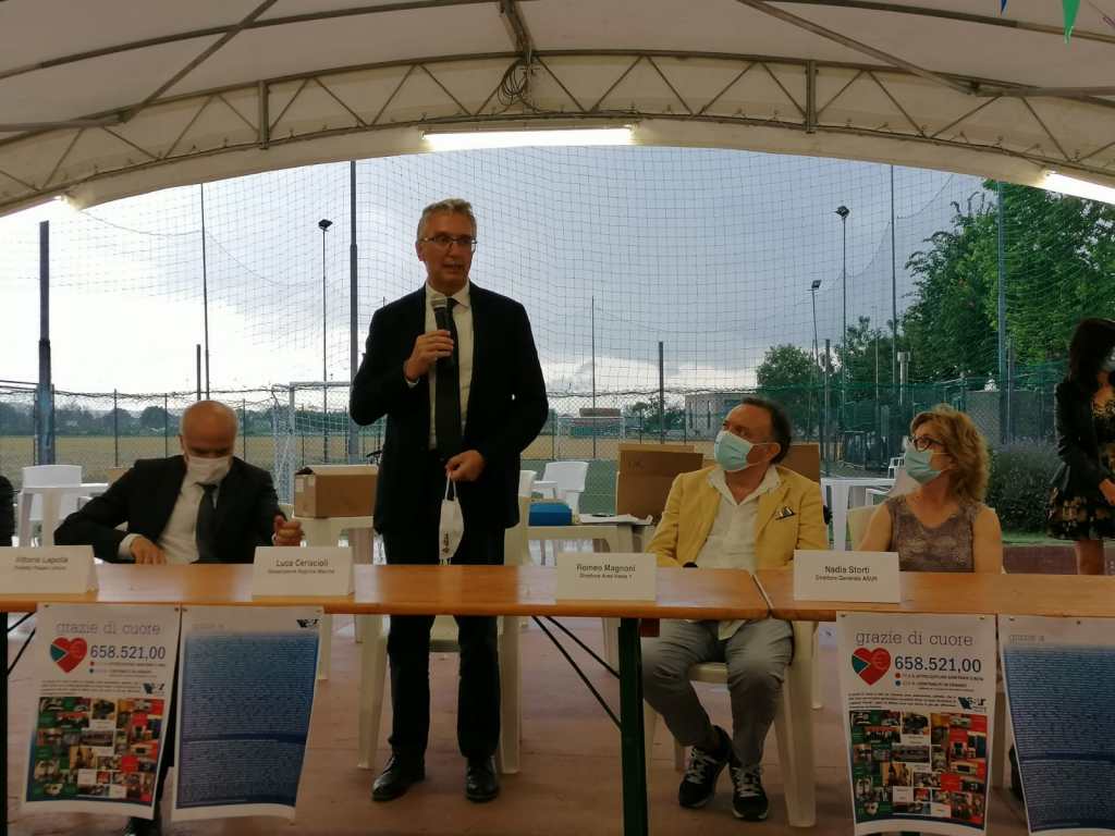 Presenti all’evento anche il Sindaco del Comune di Fano Massimo Seri, il Prefetto della Provincia di Pesaro e Urbino Dott. Vittorio Lapolla, il Rettore dell’Università degli Studi di Pesaro Urbino Prof. Vilberto Scocchi e il Governatore Luca Ceriscioli che ha evidenziato come la solidarieta’ abbia accompagnato ogni momento dell’emergenza e come i cittadini abbiano dimostrato un carattere forte , segno di una comunita’ che sa reagire.