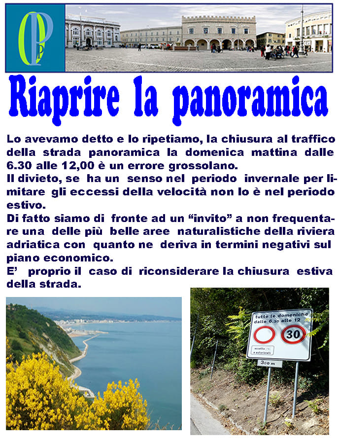 Lo avevamo detto e lo ripetiamo, la chiusura al traffico della strada panoramica la domenica dalle 6,30 alle 12,00 è un errore grossolano.