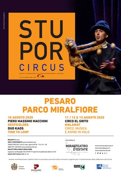 Stupor Circus torna per la seconda edizione del festival internazionale di Circo Contemporaneo promosso dal Comune di Pesaro con l’AMAT e la collaborazione di Circo El Grito, compagnia di circo contemporaneo riconosciuta dal MiBACT e da Regione Marche come progetto di Primario Interesse Regionale, esempio di straordinaria originalità e qualità.