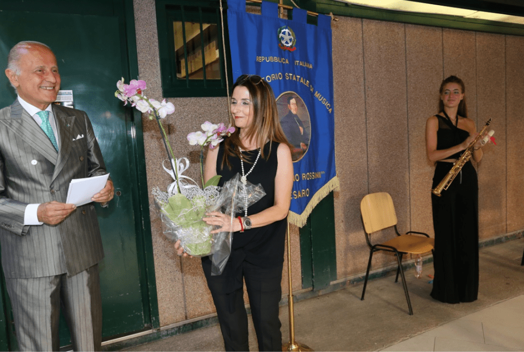 Foto 1. L’omaggio del Conservatorio Rossini al direttore generale Maria Capalbo nella precedente edizione del concerto.