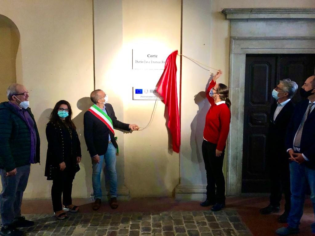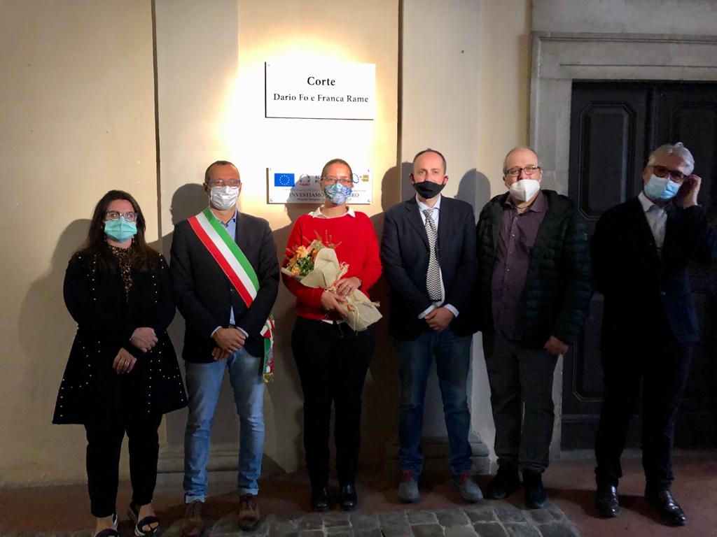“Una straordinaria coppia di artisti, un uomo e una donna impegnati a livello civile e politico nel nostro Paese – spiega l’assessore alla Bellezza Daniele Vimini -. Ragionando sui luoghi della città, ci è sembrato naturale dedicare a loro la corte di palazzo Mazzolari Mosca. Uno spazio della cultura, che ha ospitato momenti d’incontro, festival letterari e negli ultimi anni è stata palcoscenico di teatro e commedia dell’arte”. Inizialmente prevista per marzo in concomitanza con il compleanno di Dario Fo e poi rimandata per l’emergenza sanitaria, l’intitolazione non è casuale visto che nel tempo Palazzo Mazzolari Mosca ha ospitato eventi di commedia dell’arte come il Carro dei Comici di Carlo Boso, il Burattini Opera Festival o lo spettacolo di maschere balinesi di Lucia Leonardi ma pure mostre di pittura – arte molto amata da Fo – come la Gavardiana, rassegna storica del territorio. “Dario Fo ha dato un contributo importante alla città – continua il vice sindaco -, tra le tante cose va ricordato il grande impegno con il Rossini Opera Festival dal 1994 al 2006”.