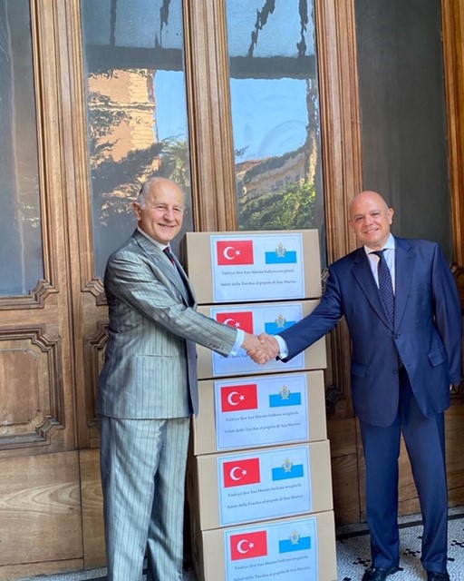 Se un illustre epidemiologo ha osservato, di fronte alla nuova insorgenza del Covid-19, che il fenomeno “non spaventa ma deve destare preoccupazione e attenzione”, appare ancora più prezioso il dono di dispositivi sanitari donati dalla Turchia “al popolo di San Marino”. A suo tempo il Segretario di Stato Luca Beccari, di fronte alla minaccia globale del Covid-19, aveva evidenziato che “ il Governo e le Istituzioni della Repubblica di San Marino, … si sono appellati alla coscienza collettiva, al senso civico, richiamando i valori della solidarietà sociale per garantire il diritto alla salute, al di sopra di ogni priorità, nell’interesse di ogni cittadino”. Conseguentemente il Dipartimento Affari Esteri della Repubblica aveva invitato i propri agenti diplomatici a considerare che, per fronteggiare la grave situazione, “ le nostre piccole dimensioni rendono ancor più necessaria l’attivazione di tutti i canali che abbiamo a disposizione per reperire i necessari finanziamenti e la fornitura del materiale sanitario utile agli operatori che affrontano l’emergenza sul campo ogni giorno”. Di qui l’iniziativa dell’ambasciatore presso la Repubblica di Turchia Giorgio Girelli il quale, a fronte di tale appello, si è rivolto al governo turco per il tramite dell’ambasciatore della Repubblica di Turchia Murat Salim ESENLI, con il quale ha sempre intrattenuto ottimi rapporti, prospettando di “ accertare – a fronte della urgente necessità di acquisire materiale sanitario per gestire l’emergenza epidemica che ha colpito in modo assai duro la cittadinanza della Repubblica con un numero rilevante di contagiati e di decessi – se sussistano condizioni per reperire donazioni di materiale sanitario e soprattutto di ‘mascherine’ di cui la Turchia è fiorente produttrice”.