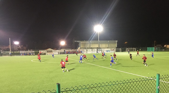La partita è stata viva, combattuta, a tratti ruvida. Vegliò ha sfiorato il raddoppio al 10’ (tiro a lato) su un ottimo assist in profondità. La squadra di casa ha sfiorato due volte il gol con Cinotti, prima lanciato da Vaierani (35’) e anticipato dal portiere di piede dal portiere in uscita a terra a trequarti campo e poi (38’) rimpallato per due volte in area dopo essersi liberato in dribbling di due avversari. Gli ospiti ci hanno provato con Lobati (15’, palla alta su cross di Neri) e al 30’ con punizione di Neri che Celato ha parato a terra.