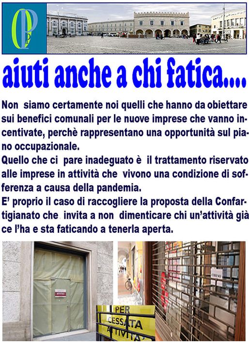 E’ proprio il caso di raccogliere la proposta della Confartigianato che invita a non dimenticare chi un’attività già ce l’ha e sta faticando a tenerla aperta.