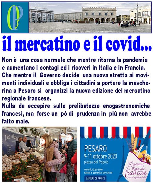 Che mentre il Governo decide una nuova stretta ai movimenti individuali e obbliga i cittadini a portare la mascherina a Pesaro si organizzi la nuova edizione del mercatino regionale francese.