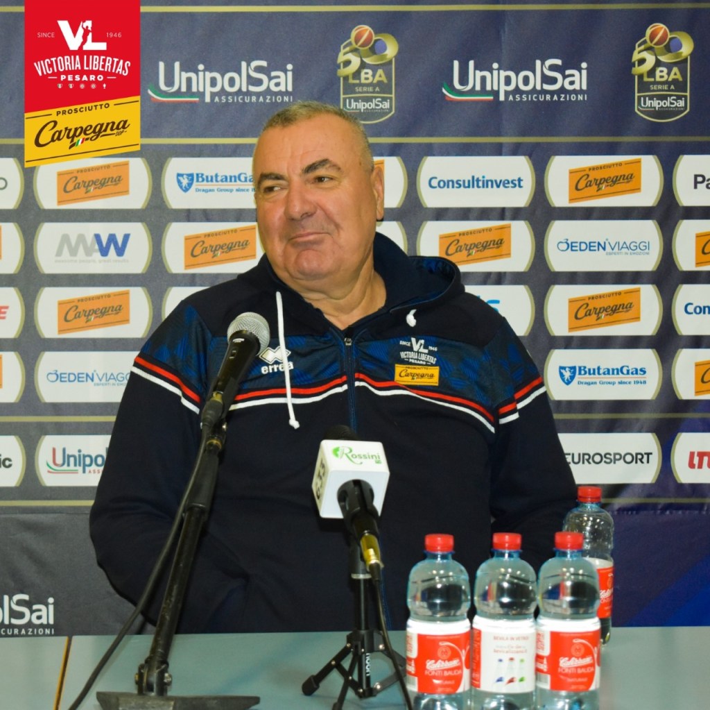 Il Coach della Carpegna Prosciutto Basket Pesaro ha analizzato anche il momento attuale: “Sabato scorso solo poche persone hanno assistito al match casalingo contro Trento: per me è un grande dispiacere perché senza pubblico non si tratta di un vero evento. Noi giochiamo per la gente, per me giocare senza pubblico non ha senso. La salute di tutti ovviamente ha la priorità, però andare avanti con uno stress enorme tra tamponi e viaggi non è affatto facile”.