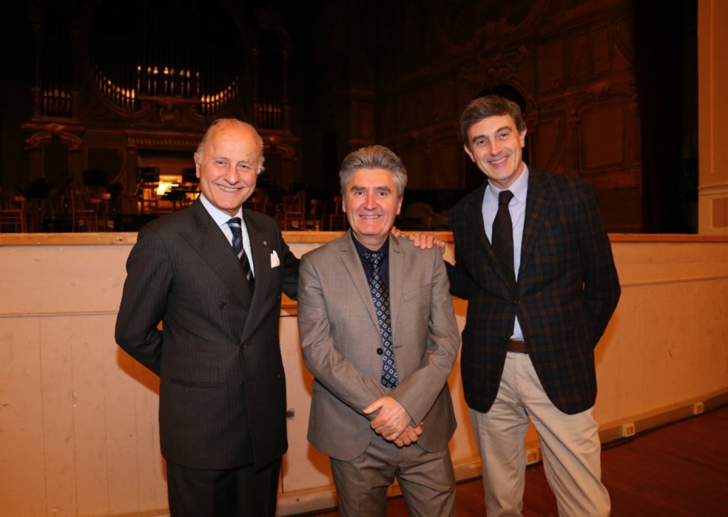In foto: Il Presidente Emerito del Conservatorio Rossini Giorgio Girelli, il maestro Fabio Masini, attuale direttore, ed il maestro Ludovico Bramanti