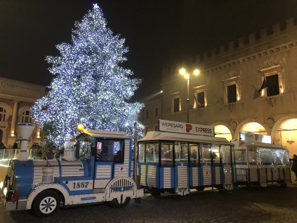 Ad arricchire il percorso dello shopping e a garantire una fruizione regolamentata e divertente della città sarà “WePesaro express” il trenino turistico, composto da 4 carrozze e agghindato a festa, che accompagnerà i pesaresi nel centro e nelle vie più caratteristiche di Pesaro in un percorso della durata complessiva di 15 minuti. La capienza del trenino sarà limitata. All’ingresso verrà misurata la temperatura a tutti i fruitori, che dovranno salire con la mascherina. Le carrozze sono divise da pannelli in plexiglass, i vagoni saranno arieggiati e igienizzati tra un turno e l’altro e verrà garantito il rispetto delle normative anti assembramento. “WePesaro express” è un treno ecologico (metano), sarà attivo da oggi (sabato 28 novembre 2020) fino a mercoledì 6 gennaio 2021, dal lunedì a giovedì dalle 10:30 alle 12:30 e dalle 15 alle 19:30; venerdì, sabato, domenica e festivi dalle 10 alle 12:30 e dalle 14:30 alle 20. Il costo è di 3 euro.
