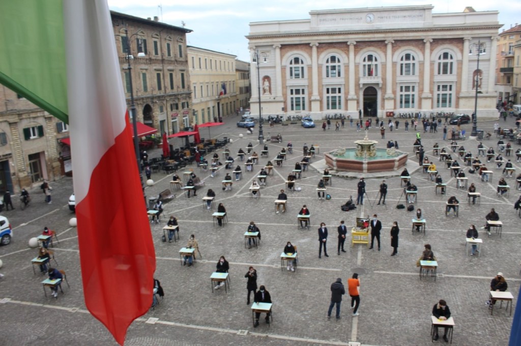 «Dopo cinque anni di falsità, crediamo che si debba fare piena chiarezza su questa vicenda, come chiede la famiglia di Giulio, anche per fare rispettare le regole definite dalla Convenzione delle Nazioni Unite contro la tortura – è il commento del sindaco Matteo Ricci -. Continuiamo a diffondere con forza “la voce” di Giulio, la voce della verità». Oggi, nel quinto anniversario, i ragazzi del liceo G.Marconi di Pesaro hanno organizzato un flashmob in piazza del Popolo, al quale hanno partecipato i rappresentanti di tutte le classi e scuole superiori pesaresi. Seduti nel loro banco, nel rispetto dei divieti e delle norme anti Covid-19, hanno assistito ad una toccante lezione di legalità e libertà. «Valori per i quali Giulio è stato ucciso», ha spiegato il presidente del Consiglio Marco Perugini, ricordando anche la lunga prigioni di Patrick Zaki. «Giulio ci ha lasciato una grande responsabilità: imporci, anche nel quotidiano, per conservare e preservare principi, diritti e doveri alla base dell’umanità. Oggi ricorrono i 5 anni dal ritrovamento del suo cadavere. Occorre pretendere verità e giustizia, ora, sempre. Grazie ai rappresentanti di istituto, a docenti e ai dirigenti scolastici del Liceo Scientifico, Mamiani e Mengaroni, per questa importante lezione in piazza Del Popolo. Lo dobbiamo per Giulio, per Patrik e per le loro famiglie».