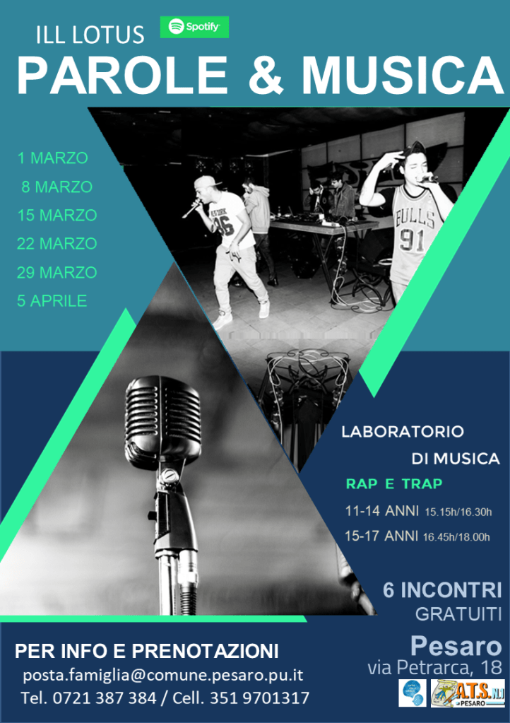 - “Parole e Musica”, laboratorio creativo musicale per pre-adolescenti (12-14 anni) e adolescenti (15-17 anni). Previsti 6 incontri in presenza;