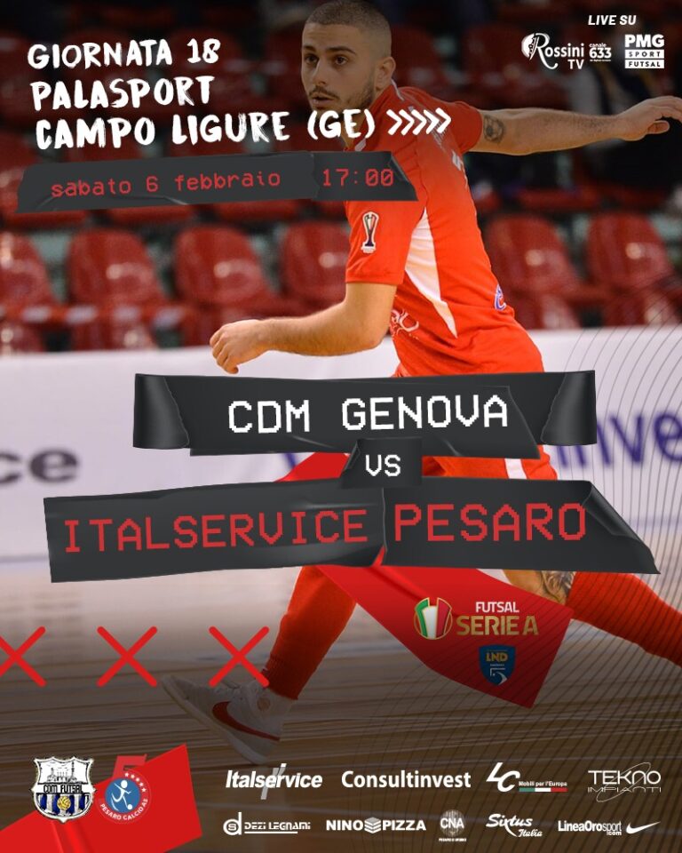 Quindici giorni dopo riecco l’Italservice Pesaro! I biancorossi domani alle 17 faranno visita al fanalino di coda CDM Futsal Genova per la diciottesima giornata di Serie A.
