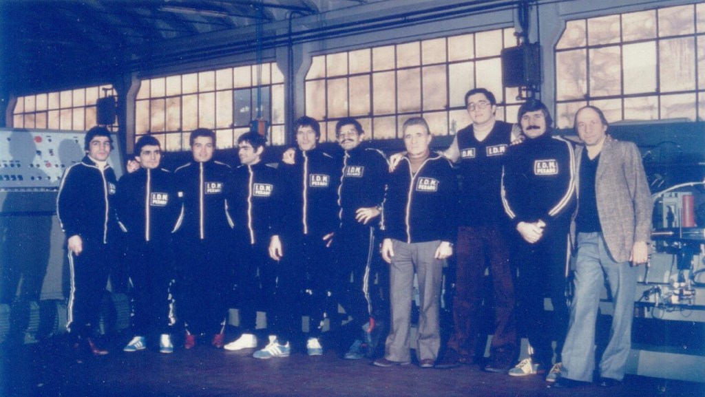 Una bella foto (stile ruggenti anni ’70) della Società Amici del Pugilato di Pesaro Otello Vitarelli sponsorizzata I.D.M. con pugili che hanno scritto la storia agonistica di questo sodalizio sportivo e della boxe nazionale come Minchillo, Lassandro e Gimenez. Fra il Maestro Lauro Mattioli, una vita dedicata interamente alla Noble Art e il pugile Damiano Lassandro è posizionato il procuratore Giovanni Branchini, figlio del mitico Umberto. Ultimo a destra l’organizzatore Gino Baioni, titolare della storica Carrozzeria di Via Morosini.