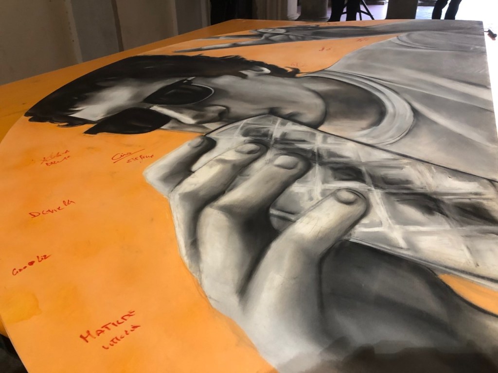 Stamattina la cerimonia durante la quale gli amici hanno firmato il ritratto in gesso poi esposto nel portale di palazzo Mazzolari Mosca