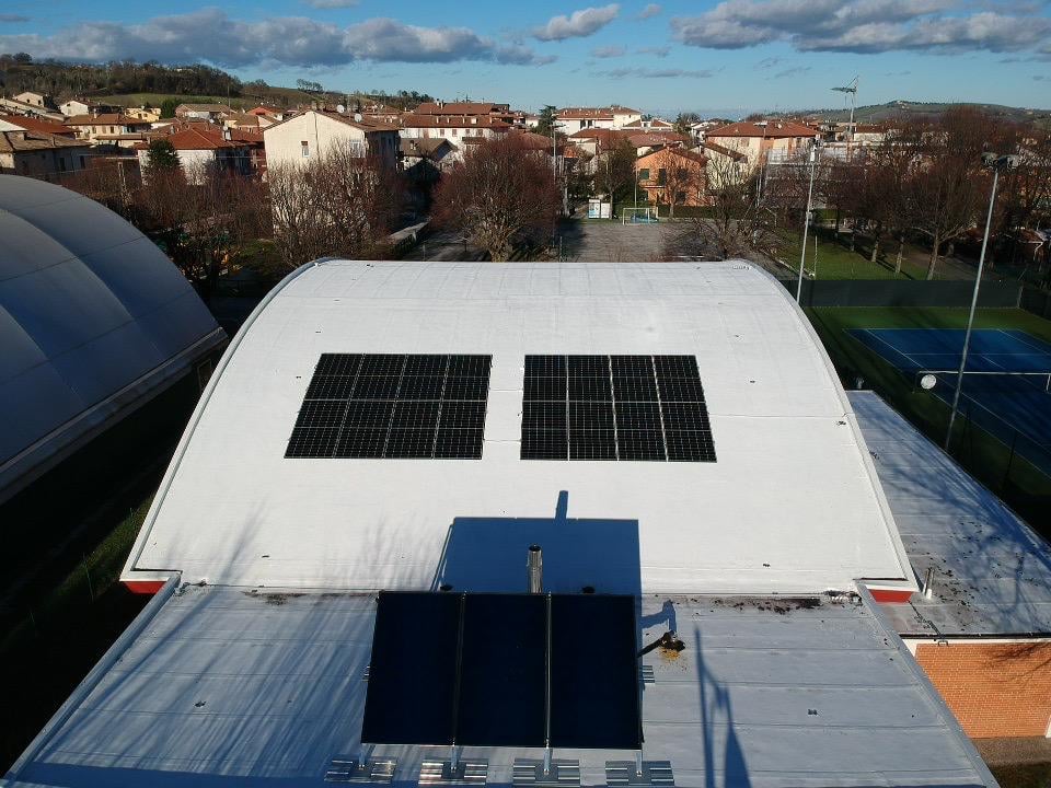 San Lorenzo Comune sempre più green. Dopo aver dato un nuovo ‘look’ e vita utile alla palestra comunale, la giunta Dellonti è passata alla fase impiantistica per la ‘green energy’. I lavori sono terminati pochi giorni fa con l’allaccio ufficiale alla rete elettrica e hanno riguardato l’installazione in copertura di due importanti elementi per la produzione di energia ‘green’ a favore della struttura, ovvero il solare termico per la produzione acqua calda sanitaria e l’impianto fotovoltaico per la produzione di energia elettrica. Vanno ad aggiungersi ad altri interventi ‘green’ realizzati nella stessa palestra, nelle scuole, al teatro, mentre a breve partirà l’efficientamento energetico della pubblica illuminazione e degli altri edifici rimanenti compreso il municipio. «I lavori – spiega il sindaco Davide Dellonti – fanno parte dell’intervento generale di ristrutturazione ed efficientamento energetico della palestra. Con questa ulteriore fase, si è andati ad implementare la richiesta energetica dell’edificio tramite l’energia gratuita e pulita derivante direttamente dal sole, una delle principali fonti energetiche rinnovabili, sia in termini di acqua calda sanitaria per le docce e spogliatoi, anche dell’adiacente spogliatoio dei campi da tennis che è stato collegato all’impianto, che in termini di fabbisogno di energia elettrica. In questo modo oltre ad avere un risparmio nel consumo di gas-metano ed energia elettrica, facciamo anche del bene all’ambiente! Inoltre questi due ultimi impianti installati si aggiungono a un’ampia serie di interventi tutti rivolti a ridurre il fabbisogno energetico dell’edificio, i costi di gestione dell’impianto, le emissioni inquinanti in atmosfera e dare maggiore benessere interno ai ragazzi e sportivi che utilizzano l’impianto». Il costo complessivo dell’intervento ammonta a circa 150mila euro: «E’ stato finanziato con risorse a fondo perduto da bando regionale per l’impiantistica sportiva e da un contributo senza oneri finanziari ottenuto dal Coni, Istituto Credito Sportivo. Inoltre, gli interventi realizzati di efficienza energetica ci stanno consentendo di attingere ad ulteriori importanti risorse derivanti dal conto termico del Gestore servizi energetici, sempre risorse a fondo perduto. Nelle prossime settimane – conclude il sindaco Dellonti – verranno eseguiti anche gli interventi conclusivi relativi ai sistemi di oscuramento interno, che come quelli già realizzati saranno affidare a ditte locali». Intanto proseguono i lavori della nuova palestra-struttura polifunzionale, per un importo di 1,3 milioni di euro.