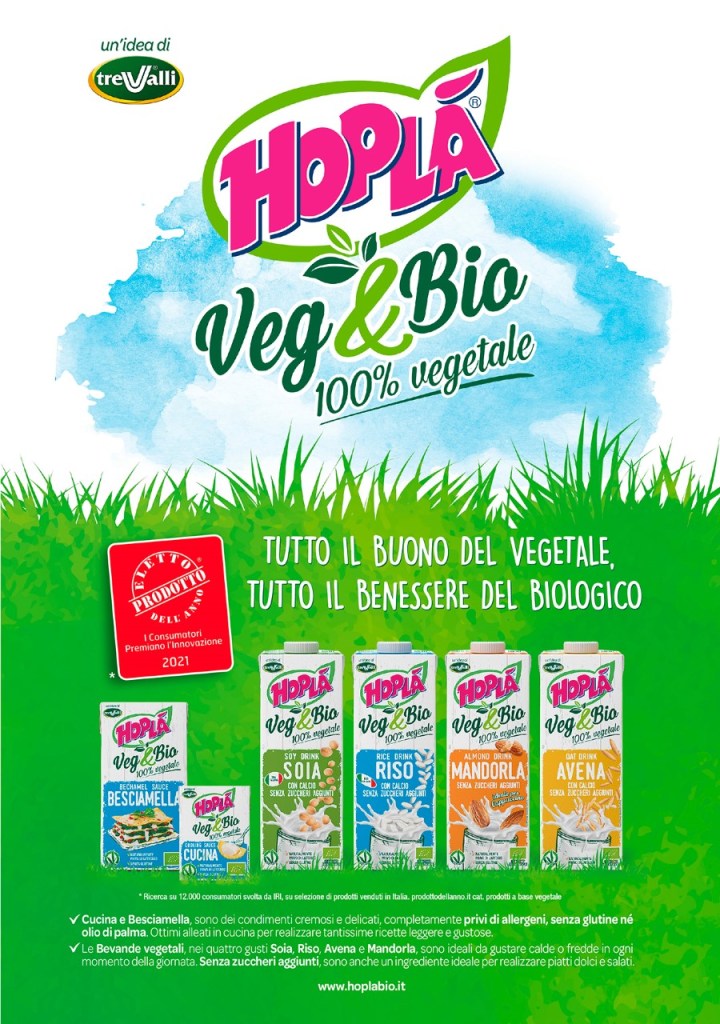 JESI (AN) – A un anno dall’ingresso nel mercato, la linea biologica e 100% vegetale Hopla Veg&Bio di TreValli Cooperlat è stata eletta Prodotto dell’Anno 2021 per la categoria prodotti vegetali. Il Premio all’Innovazione è basato esclusivamente sul voto di 12 mila consumatori che valutano, attra-verso una ricerca condotta dall’Istituto Ricerca IRI, leader mondiale nella gestione di ricerca dei big data, il grado di innovazione e soddisfazione. Il Premio valorizza i prodotti innovativi attraverso l’uso del logo Eletto Prodotto dell’Anno in tutta la comunicazione nell’arco di un anno, offrendo la possibilità ai consumatori di riconoscere l’innovazione dei prodotti e aiutandoli a scegliere fra miriadi di proposte sul mercato.