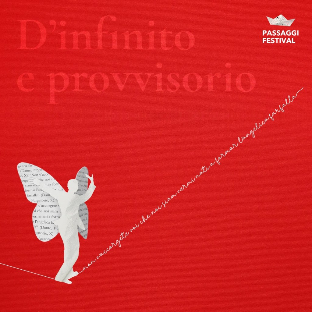 Strettamente legata al tema anche la scelta dell’immagine 2021. Una figura umana con ali di farfalla in equilibrio su un filo fatto con le parole del verso di Dante (a cui si rende omaggio nel 700esimo della morte). La sua realizzazione è frutto di un lavoro di squadra tra Federica Campanelli e Federica Falciasecca. Ancora una volta si valorizzano giovani competenze in un festival che va avanti grazie alla professionalità e alla passione di ragazze e ragazzi che da anni costituiscono il valore aggiunto della manifestazione.