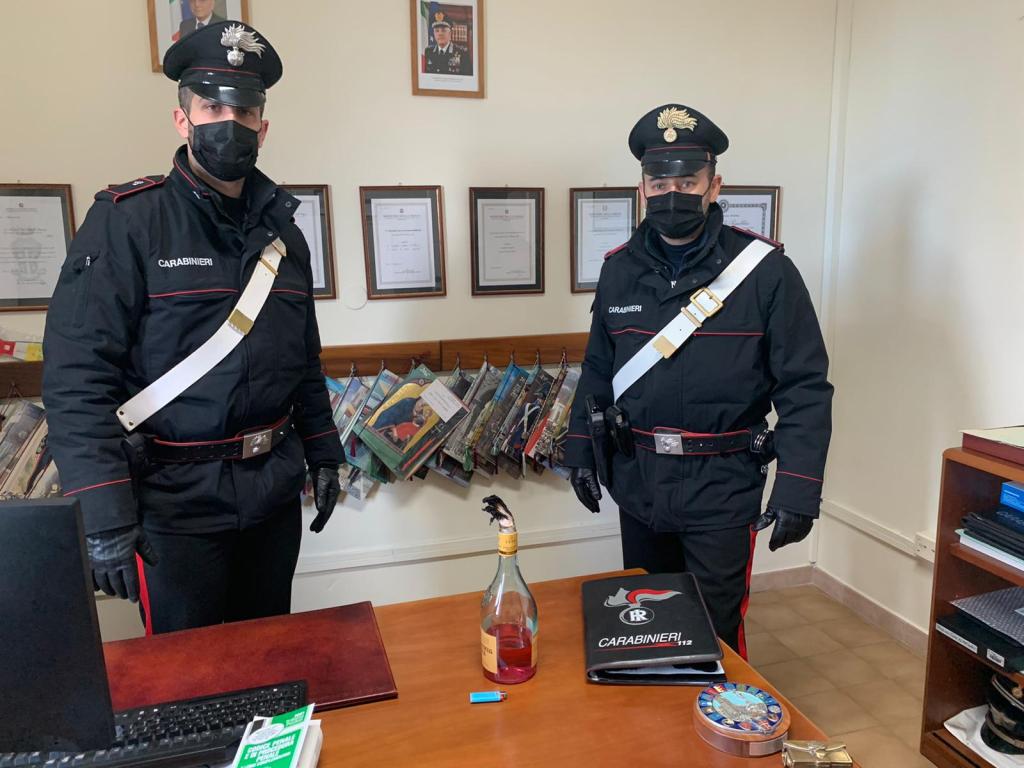 I carabinieri dellaStazione di Colli al Metauro hanno trattoin arrestoperdetenzione illegale di un congegno incendiario del tipo bottiglia “molotov” e danneggiamento di autovettura a seguito di incendio un 45enne del posto.Erano circa le 18.30 di mercoledì scorso quando i militari sono stati allertati dalla Centrale Operativa di Fanoper una richiesta d’intervento formulata sul 112 da una donna che aveva segnalato il danneggiamentodella propria autovettura parcheggiata in località Calcinelli mediante una bottiglia molotov.Immediato l’intervento dei militari in quel momento impegnati in quellazona per la verifica del rispetto delle misure di contenimento del contagio. Sul luogo i carabinieri hanno trovato una bottiglia di brandy “Stravecchio”riempita per metà di alcool etilico con all’estremità un innesco poco prima spento dalla donna. La vittima dichiarava ai militari di aver rinvenuto la bottiglia ancora accesa sotto la parte posteriore destra della sua autovettura e che le fiamme avevano già abbondantemente deformato la parti del mezzo prossime alla ruota posteriore sinistra, prima che riuscisse a spegnerlecome poteva. La donna infatti alla vista di quanto stava accadendo, non senza difficoltà, era riuscita prima a spostare la bottiglia ancora in fiamme da sotto la macchina e riporla al centro del piazzale, per poi spegnere con dell’acqua reperita nei paraggi le fiamme sul mezzo, che avevano già deformato soprattutto le parti in plastica, e quelle ancora vive che fuoriuscivano dalla bottiglia. I militariraccolte le prime informazioni, e in particolare che in loco poco prima era stato notato il fratello della proprietaria del mezzo (i militari sapevano che da tempo i rapporti familiari tra lui e la sorella non erano più sereni) si sono messi subito alla ricerca nei paraggi dell’autore del gesto che per il brevissimo tempo trascorso non poteva essere andato lontano. Poco distante dal luogo degli eventi infatti, di li a poco, è stato intercettato e sottoposto a controllo il fratello della donna, che all’esito della perquisizione è stato trovato in possesso di un accendino. All’esito degli accertamenti di rito,che hanno cristallizzato la responsabilità del giovane riguardo al grave gesto e lasuapresenza in loco poco prima che la sorella si accorgesse dell’incendio in atto, il 45enne è stato dichiarato subito in stato di arresto per detenzionedi congegno artigianale incendiario e danneggiamento di auto mediante incendio,e tradotto al carcere di Ancona Montacuto. Pericolosissima la condotta posta in essere: la bottiglia molotov infatti è considerata dalla leggeun vero e proprio congegno esplosivo di cui è vietata la fabbricazione. La bottiglia sarebbe potuta esplodere e causare danni ancora più gravi.Stamane si è svolta l’udienza di convalida, all’esito della quale il Giudice ha disposto per l’uomo la permanenza in carcere.