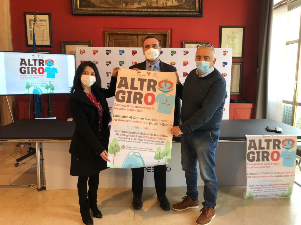 Presentata Altrogiro, l’iniziativa di economia promossa dalla Onlus Gulliver in collaborazione con il Comune di Pesaro. Il progetto prevede che i proventi delle vendite dell’usato delle Botteghe della Onlus Gulliver siano utilizzati per l’acquisto di nuovi giochi da collocare nei parchi della città.