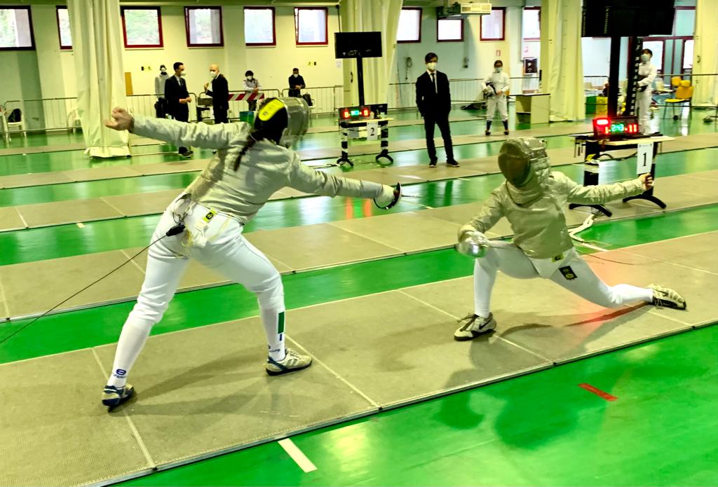 La giornata sportiva di domenica si è aperta con le gare di Sciabola femminile che hanno visto la vittoria (e la qualificazione al Campionato Italiano) di Asia Volpi del Fanum Fortunae Scherma su Sara Tonelli del medesimo club.