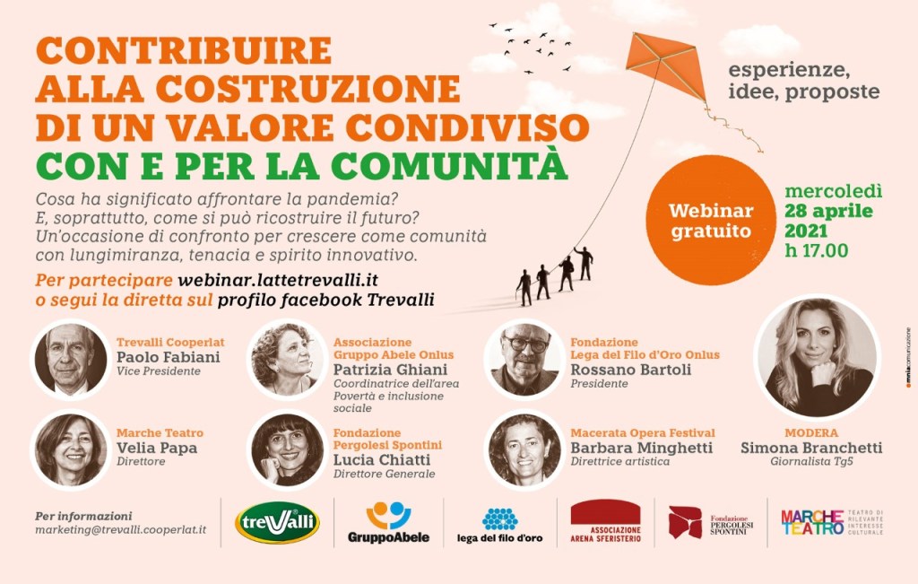 La pandemia da Covid-19 ha amplificato la distanza, ma ha accelerato un nuovo modo di fare aggregazione. Ha messo nel contempo in evidenza quanto sia reciprocamente dipendente il ruolo di un’azienda e il benessere della comunità dentro cui è inserita. Da sempre attenta al territorio in cui opera e alla valorizzazione delle eccellenze con un interesse attivo verso la responsabilità sociale, TreValli Cooperlat promuove un webinar (gratuito) nel quale intervengono i rappresentanti delle più prestigiose organizzazioni sociali e culturali del territorio, con cui collabora da diversi anni. Il fine è quello di condividere le esperienze vissute durante la pandemia, le strategie attivate per affrontare gli effetti del distanziamento fisico e sociale del lockdown.