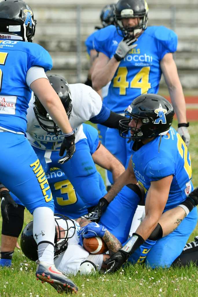 In questo esordio mancherà una pedina importante, il runningback titolare Marco Scola, messo ko da un incidente stradale: “Un vero peccato, perché ci eravamo allenati molto bene, per fortuna abbiamo delle alternative valide – dice Alessandro Angeloni, assistente del reparto offensivo -. Proseguiamo nel percorso iniziato con coach Mel Galli: il suo tipo di attacco si basa su opzioni continue fra corse e passaggi, non è facile per il nuovo quarterback Enrico Aguzzi, che l’anno scorso aveva cominciato bene, poi purtroppo il torneo venne stoppato dopo appena una partita”. Mentre la difesa è sempre coordinata da Enrico Leonardi: “E’ sicuramente più facile mettere insieme un reparto difensivo, più fisico ed istintivo, con meno giochi rispetto all’attacco. Siamo in forma – dice -: i tanti veterani stanno facendo crescere i giovani, si sono ben amalgamati e sono orgoglioso di loro”.