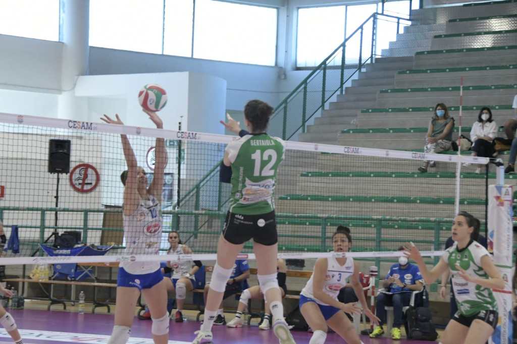 Nel primo set Marsala va subito 2-0 ma un break al servizio di Pamio porta a +2 le tigri. Bacchi allunga 7-4, Pistolesi riaggancia con un ace sulla stessa Bacchi (9-9) e l’errore di Colzi riporta avanti Marsala (12-11). Bacchi risorpassa (17-16), Colzi trova il +2 con un mani fuori (20-18, timeout per Marsala). Pamio mantiene a +2 le tigri (23-21) e Marsala chiama il secondo timeout. Marsala sbaglia la pipe del 23-23, chiude Pamio 25-23.