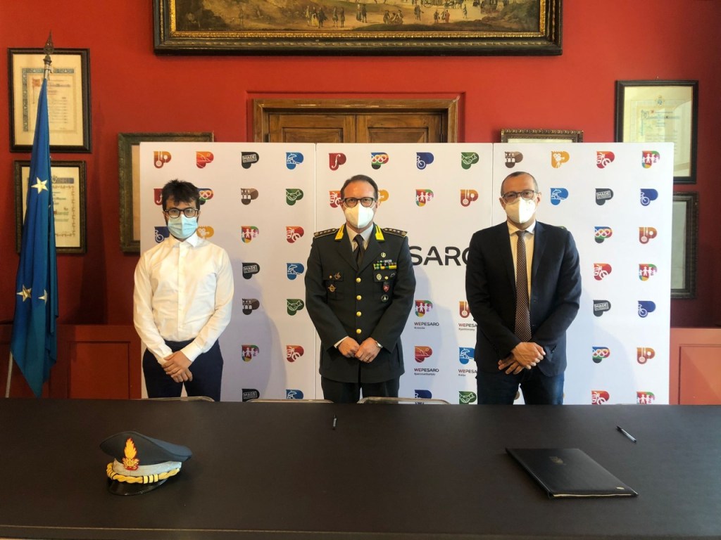 Presenti alla firma il sindaco Matteo Ricci, il Comandante Provinciale Enrico Blandini e l’assessore al Rigore Riccardo Pozzi.