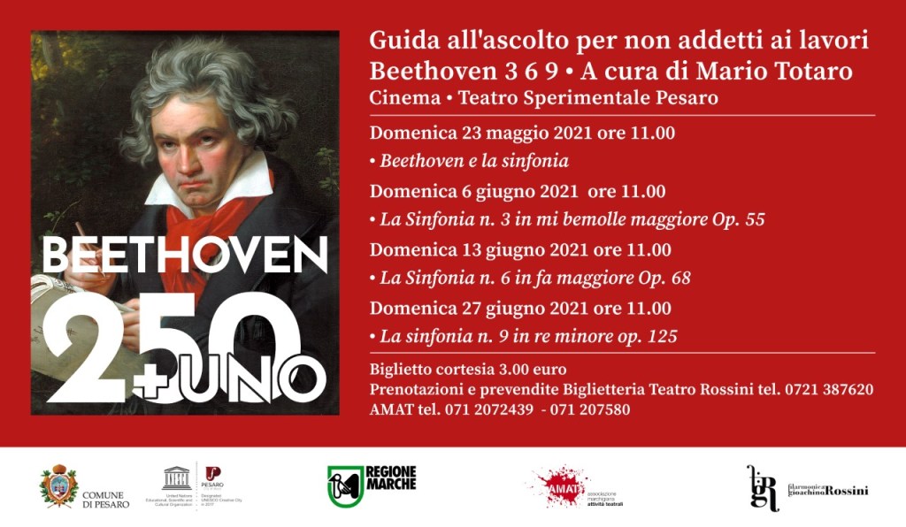 Il titolo della nuova rassegna “Beethoven 3 6 9” è un piccolo gioco numerologico voluto dal curatore Totato, ma anche la sintesi numerica della scelta di presentare solo tre delle sinfonie del grande compositore tedesco. La Terza, la Sesta e la Nona sono composizioni importanti dal punto di vista musicale ma anche molto differenti tra di loro, esempi rilevanti del genio beethoveniano.