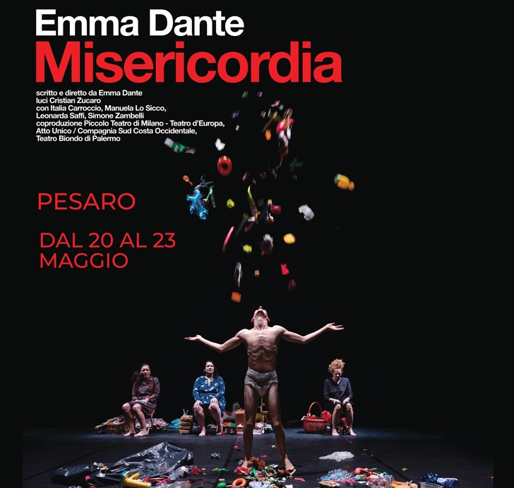 Misericordia è una favola contemporanea. Racconta la fragilità delle donne, la loro disperata e sconfinata solitudine». Così Emma Dante presenta il nuovo spettacolo con cui rinnova la collaborazione artistica con il Piccolo Teatro. Il testo racconta la storia di tre donne che si prostituiscono e di un ragazzo menomato che vive con loro in un monovano lercio e miserevole. Durante il giorno le donne lavorano a maglia e confezionano sciallette, al tramonto, sulla soglia di casa, offrono ai passanti i loro corpi cadenti. «Arturo non sta mai fermo – continua la Dante – è un picciutteddu ipercinetico. Ogni sera, alla stessa ora, va alla finestra per vedere passare la banda e sogna di suonare la grancassa. La madre di Arturo si chiamava Lucia, era secca come un’acciuga e teneva sempre accesa una radiolina. La casa era china ’i musica e Lucia abballava p’i masculi! Soprattutto per un falegname che si presentava a casa tutti i giovedì. L’uomo era proprietario di una segheria dove si fabbricano cassette della frutta, guadagnava bene ma se ne andava in giro con un berretto di lana e i guanti bucati. Lo chiamavano “Geppetto”. Alzava le mani. Dalle legnate del padre nasce Arturo, mentre Lucia muore due ore dopo averlo dato alla luce. Nonostante l’inferno di un degrado terribile, Anna, Nuzza e Bettina se lo crescono come se fosse figlio loro. Arturo, il pezzo di legno, accudito da tre madri, diventa bambino».