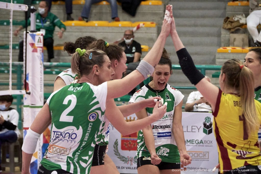 La Megabox Vallefoglia ospita domani pomeriggio alle 17 al PalaDionigi di Montecchio la Eurospin Ford Sara Pinerolo nella gara due della finale dei play-off per la promozione in A1. Nella gara di andata di mercoledì a Pinerolo le tigri hanno espugnato il fortino delle avversarie con una bella vittoria in quattro set, al termine di una partita molto combattuta. La serie è al meglio delle tre partite: l’eventuale gara tre è prevista il giorno successivo, domenica 30 maggio, sempre al PalaDionigi alle 17. In palio c’è un posto nel campionato di A1 2021/22.
