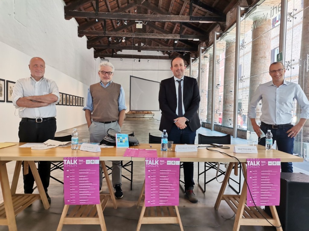 Al tavolo della conferenza Marco Perugini, presidente del Consiglio comunale: «Grazie per aver scelto Pesaro come location esclusiva di Talk. Sarà una bella sfida sia per Il Post, sia per la città, che è pronta a ripartire anche con questo grande evento dalla qualità superiore alle aspettative e la cui presenza in piazza del Popolo e in Pescheria ci riempie di orgoglio».