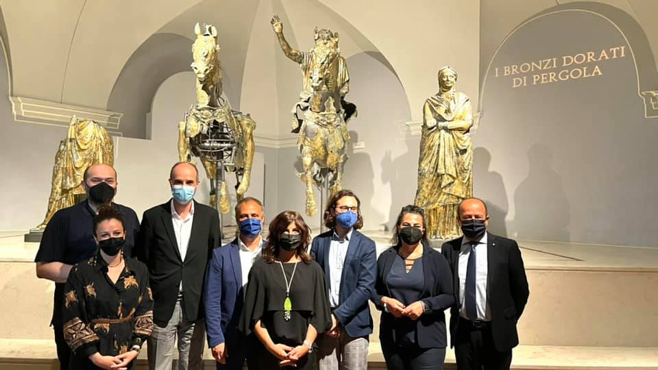 Per la Soprintendenza Archeologia, Belle Arti e Paesaggio delle Marche è intervenuto Diego Voltolini che ha portato anche i saluti della soprintendente Marta Mazza: «I Bronzi dorati hanno reso celebri Pergola e le Marche in tutto il mondo. Il nostro ruolo è tutelare questi beni e garantirne la conservazione. Per questo abbiamo avviato dei progetti importanti. Fondamentale la collaborazione con gli enti, come in occasione della realizzazione della sala immersiva».