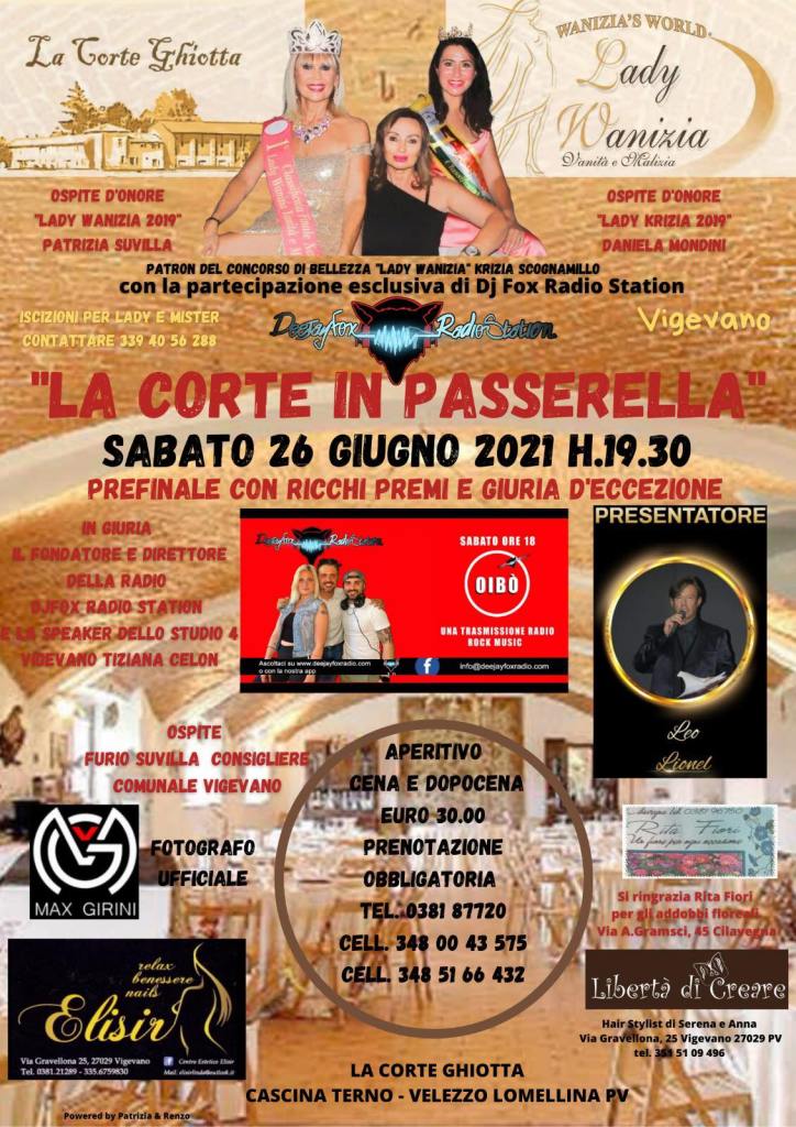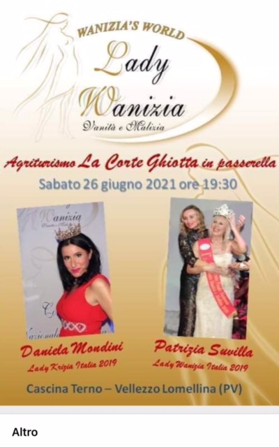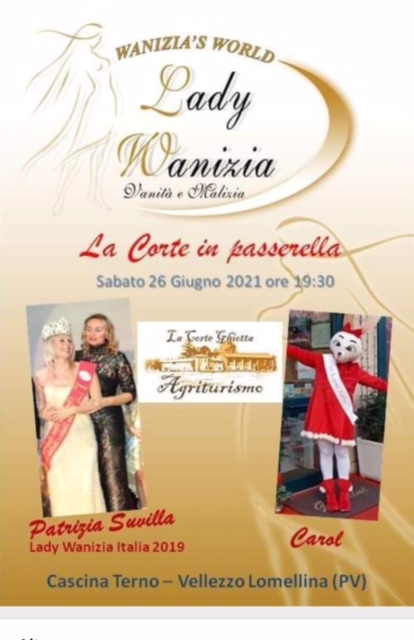Sabato 26 giugno, alle ore 19,30, si terrà a Cascina Terme – Vellezzo Lomellina, presso l’agriturismo La Corte Ghiotta, la prefinale di Lady Wanizia Vanità e Malizia, un Concorso di Bellezza a Carattere Nazionale, ideato per Mister e Lady divisi per tutte le categorie d’età e improntato sulla simpatia, sul divertimento e sulla voglia di malizia