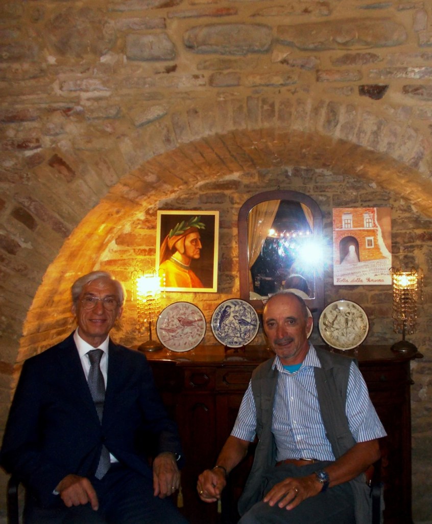 A Pesaro in Via Mazzolari è ubicata l’Osteria di mare “Volta della Ginevra” dove giovedì 10 giugno era ospite d’onore l’amico affrescatore Paolo Polidori, eccelso artista locale non ancora giustamente conosciuto per il suo talento pittorico. Per il 700° anno di ricorrenza della morte di Dante, Giuliano Nardelli, docente esperto di sociolinguistica della comunicazione e critico d’arte, ha presentato dei quadri di Paolo Polidori che raffigurano le vicende di Paolo e Francesca nonché di Lancillotto e Ginevra. Per Paolo Polidori, tirato a lucido, elegantissimo ma soprattutto felice della magnifica serata nella quale era presente per l’Amministrazione Comunale il Vicesindaco e Assessore alla Bellezza Daniele Vimini, si è trattato praticamente di un “oscar” alla carriera, per la passione, l’energia e l’amore che ha dedicato all’arte pittorica.