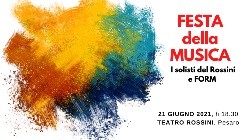 Lunedì 21 giugno ore 18.30, in occasione della Festa europea della Musica, sulla scena del Teatro Rossini si esibiranno i solisti del Conservatorio Rossini, scelti a rappresentare l’Istituto pesarese in una giornata che, in coincidenza con il solstizio d’estate, annualmente celebra la musica in tutte le sue declinazioni. Le giovani promesse del Conservatorio saranno accompagnate dalla FORM-Orchestra Filarmonica Marchigiana, diretta dal M° Manlio Benzi, docente di direzione d’orchestra del Conservatorio Rossini nonché direttore attivo in contesti nazionali e internazionali sia in ambito operistico sia in quello sinfonico.