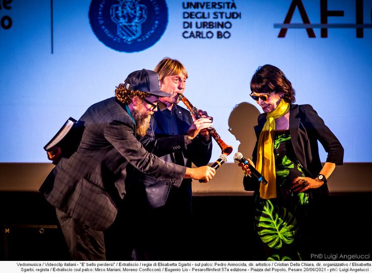 Anche la serata di domenica ha rappresentato un momento molto particolare ed emozionante, soprattutto quando Vittorio Ondedei e l’assessore Daniele Vimini hanno presentato la versione discografica di “Luccichini dappertutto”, il grande concerto tenutosi lo scorso anno in ricordo di Mirko Bertuccioli aka Zagor Camillas, a cui è seguita la proiezione di un video-ricordo realizzato da Giacomo Laser. Note più leggere hanno poi stemperato l’atmosfera, quando Elisabetta Sgarbi ha presentato sul palco il suo videoclip È bello perdersi degli Extraliscio, un gruppo con il quale ha girato anche un documentario e di cui si è innamorata sin dal primo incontro, rapita dall’energia, dalla vitalità e dall’originalità che contraddistingue il loro “punk da balera”. Il pubblico non ha potuto che concordare con la regista, quando i due membri della band presenti, Mirco Mariani e Moreno il biondo, hanno improvvisato un paio di brani “scaldando” il pubblico per l’evento successivo, ovvero il “Concerto muto” di N.A.I.P. L’artista rivelazione dell’ultima edizione di X Factor ha infatti proposto oltre un’ora di sonorizzazioni, mescolando sonorità elettroniche, performance fisica e sovrapposizioni canore, fondendosi in maniera sorprendente con le immagini dei cortometraggi d’avanguardia degli anni ’20, passando senza soluzione di continuità da Hans Richter a Man Ray, da Marcel Duchamp a Walter Ruttman per un’esperienza quasi metafisica. È stata, insomma, una serata interamente dedicata al connubio tra musica e cinema, come nelle intenzioni della sezione Il muro del suono curata da Anthony Ettorre e Vittorio Ondedei.