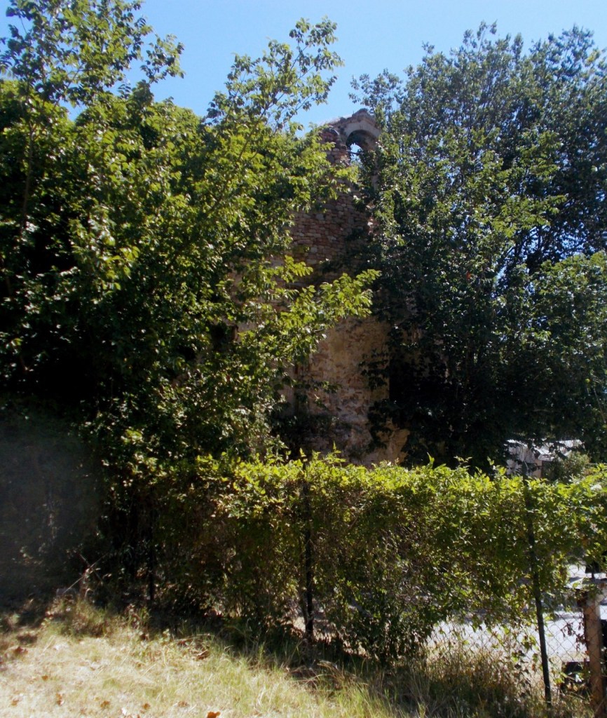 Pieve di San Lorenzo in strada: un edificio plebale nel pesarese (CASE BRUCIATE): cadente, abbandonato, coi muri coperti di edera, di erbacce e di rovi, semidiroccato dalle bombe dell’ultima guerra. Tra i ruderi della costruzione si erge miracolosamente intatto un piccolo campanile a vela. L’interno, a cielo completamente aperto, è a forma ottagonale: prima degli eventi bellici del 1944 la chiesa di San Lorenzo aveva tre altari. Il maggiore dedicato al Santo protettore e i due laterali a San Giuseppe e alla Madonna del Carmine.