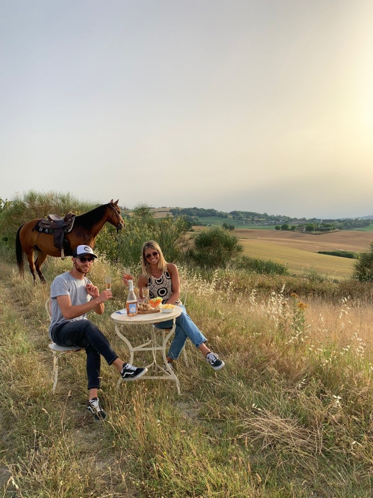 Giacomo, sarà una esperienza in grado di stimolare tutti i sensi. Al tramonto, l’aperitivo ammirando un paesaggio meraviglioso che spazia dal mare Adriatico alla montagna. Cosa volere di più?