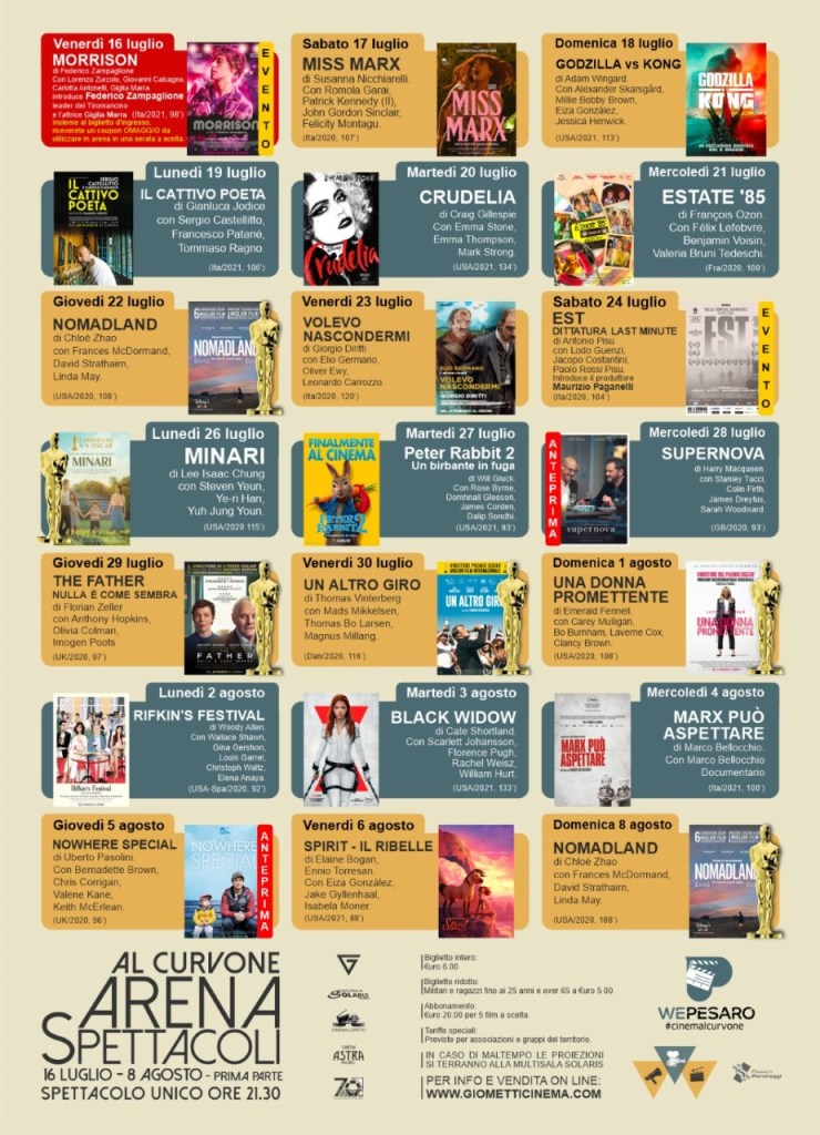 L’opera liberamente tratta dal suo romanzo Dove tutto è a metà, scritto insieme a Giacomo Gensini e pubblicato da Mondadori segna l’inizio, col botto, della programmazione del “cinema all’aperto” al Curvone firmata da Giometti Real Estate & Cinema srl. La ditta collaborerà, nello svolgimento dell’iniziativa, con tutte le sale cittadine – Giometti (Metropolis e Multisala), Astra, Loreto, Solaris.