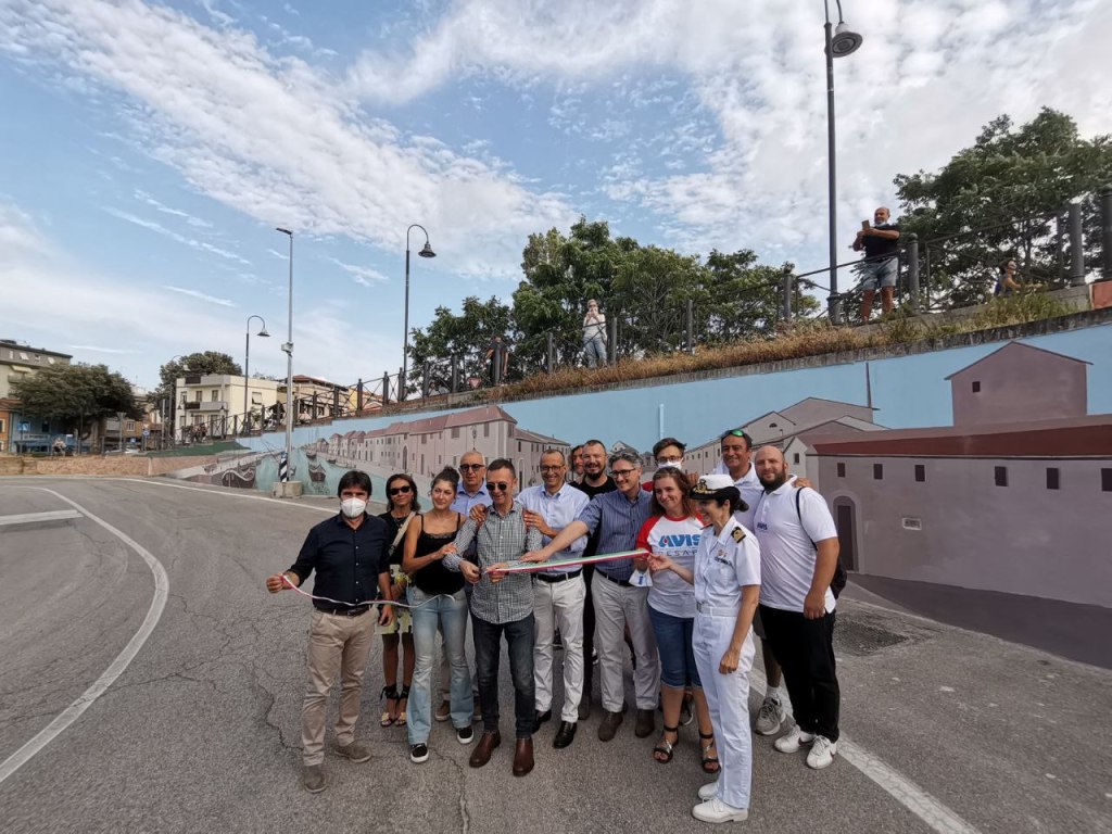 Il Porto com’era e il Porto com’è. Da oggi chi passa in strada Tra i Due Porti potrà ammirare il presente e il passato di uno dei luoghi più storici di Pesaro. «C’è stato tanto entusiasmo attorno alla realizzazione di quest’opera, soprattutto da parte dei cittadini del porto, che hanno dimostrato grande attaccamento a questo quartiere – così il sindaco Matteo Ricci -. Si tratta di una riproduzione che raccoglie un pezzo di identità della nostra città. Un piccolo tassello che si aggiunge alla strategia del “Portobello”, che finalmente sta riprendendo vita». Il muro di strada Tra i Due Porti «era una di quelle cose da sistemare, una magagna – scherza Ricci – ma ora è stato fatto un bel lavoro. Il Comune si è fatto carico del lavoro di messa a posto del muro, grazie alla collaborazione con Avis abbiamo trovato le risorse per l’opera. Ci riempie d’orgoglio il fatto che a realizzarlo sia stata un’artista del nostro territorio. Continueremo ad impegnarci per la città e per questo quartiere, per renderlo sempre più bello e vivo. Stiamo colorando i luoghi grigi, pensiamo che questi punti possano diventare una mostra itinerante da visitare in bicicletta. Ringraziamo Rossella De Stefani, Avis, la Capitaneria di Porto, per aver dato la concessione alla realizzazione del murale nella strada Tra i Due Porti».