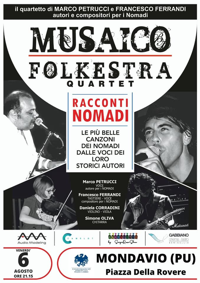 Il Musaico Folkestra Quartet è un quartetto fondato da Marco Petrucci e Francesco Ferrandi, autori delle canzoni dei Nomadi, che presenteranno: “Racconti Nomadi: le più grandi canzoni dei Nomadi dalle voci dei loro storici autori”.